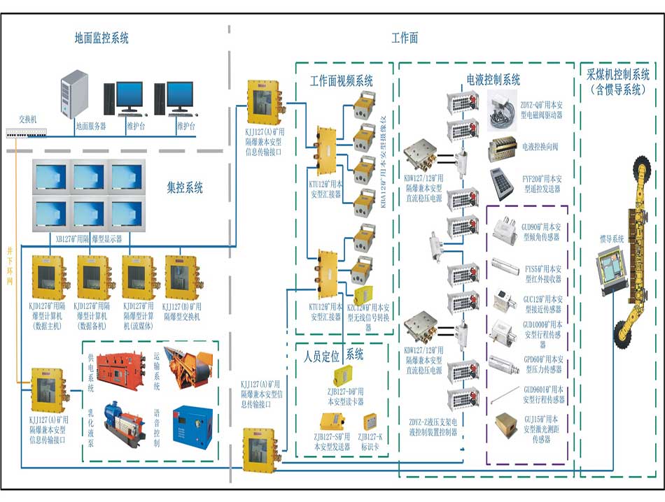 It has the monitoring function of the ground dispatch center to the equipment on a fully mechanized mining face.
