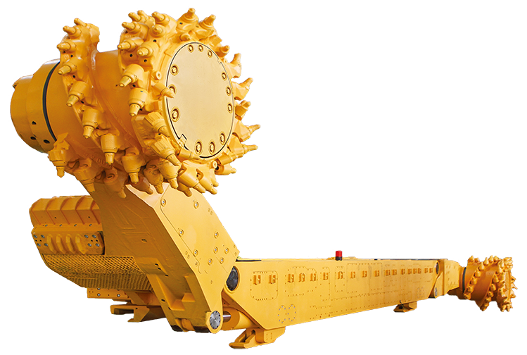 高適應性矮機身、大功率、彎搖臂結構,過煤空間大,裝煤效果好,同時具有超強破巖能力和極高的牽引速度。