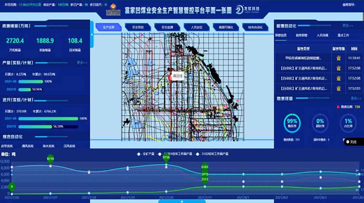 以信息系統(tǒng)為基礎(chǔ),以網(wǎng)絡(luò)安全為保障,以數(shù)據(jù)平臺(tái)為支撐,以地質(zhì)保障、采掘系統(tǒng)、輔助生產(chǎn) 系統(tǒng)、礦井安全、經(jīng)營(yíng)管理各個(gè)業(yè)務(wù)模塊的智能化建設(shè)為主要內(nèi)容,采用物聯(lián)網(wǎng)、云計(jì)算、大數(shù)據(jù)、人工智能、自動(dòng)控制、移動(dòng)互聯(lián)網(wǎng)、智能裝備等與煤炭開(kāi)發(fā)技術(shù)裝備進(jìn)行深度融合形成全面自主感知、實(shí) 時(shí)高效互聯(lián)、自主學(xué)習(xí)、智能分析決策、動(dòng)態(tài)預(yù)測(cè)預(yù)警、精準(zhǔn)協(xié)同控制的煤礦智能系統(tǒng)。